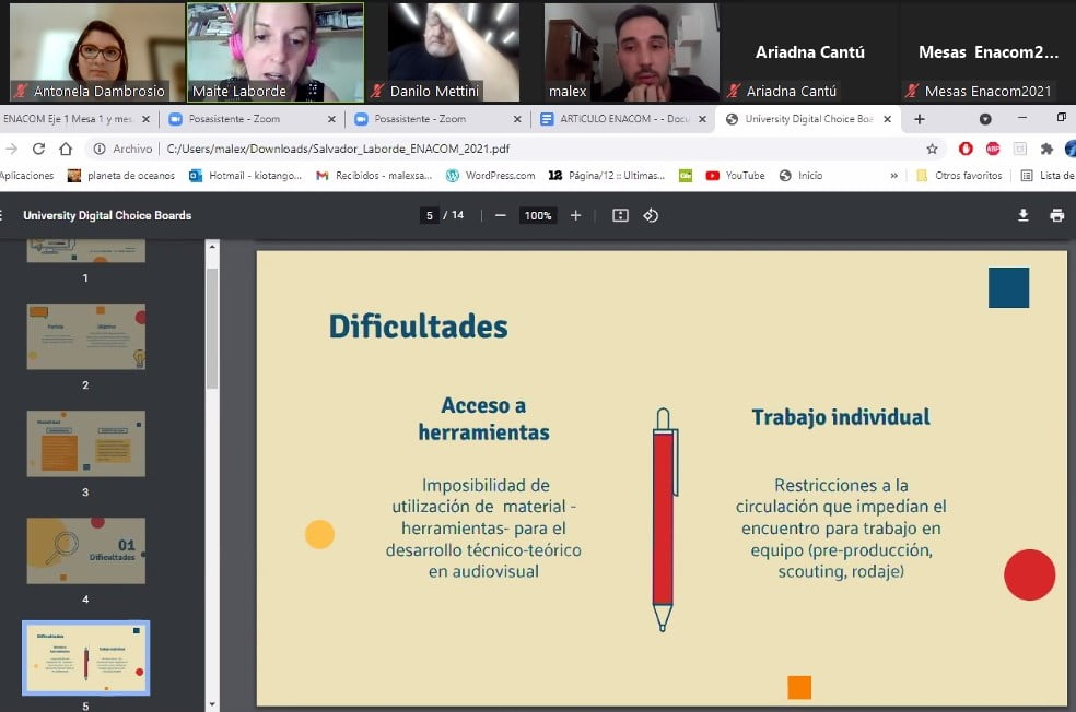 Maite Laborde y Mauro Salvador, también docentes de esta casa, presentaron “Problemáticas en los procesos de aprendizaje y enseñanza a distancia de las materias del área audiovisual de la licenciatura en Comunicación de la Universidad Salesiana“, analizando un punto crítico para nuestras carreras durante la pandemia.
