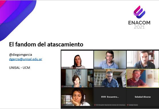 Diego García expuso su trabajo “El fandom del atascamiento: narrativas transmedia alrededor del encallamiento en el Canal de Suez”, en el que analizó las narrativas transmedia surgidas alrededor del encallamiento del buque Ever Given en el Canal de Suez, en marzo de este año.