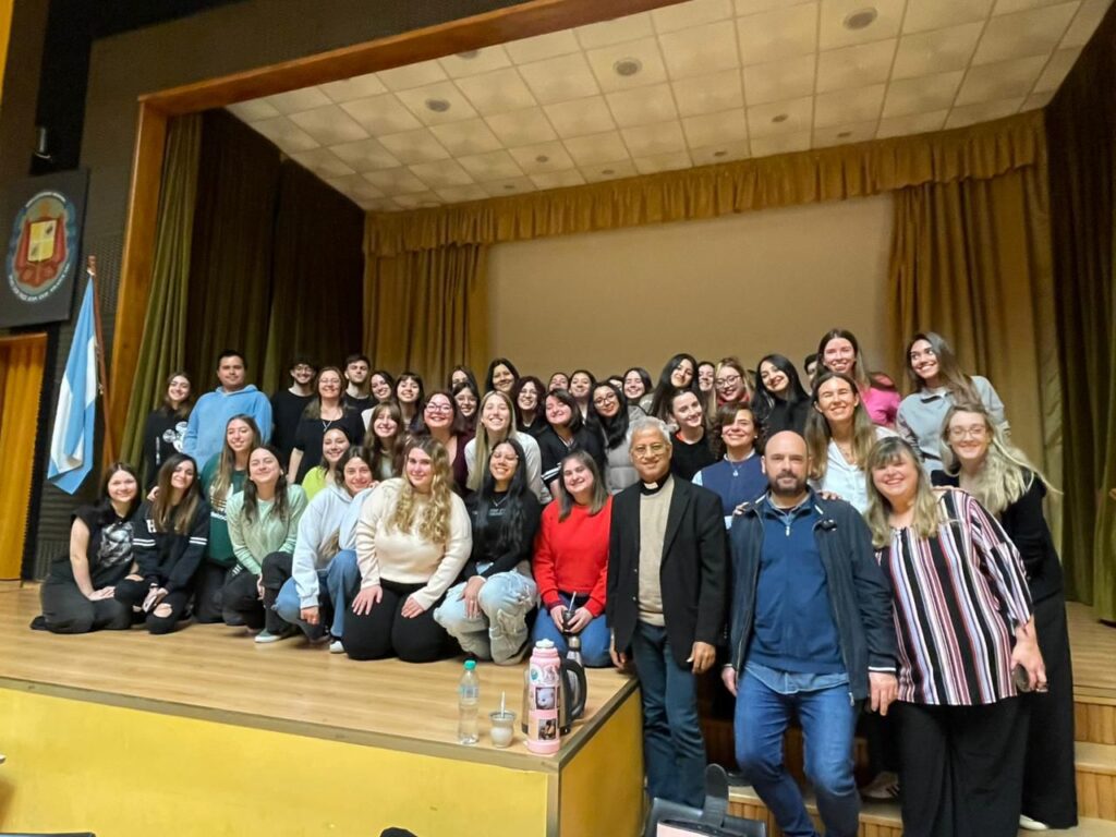 El paso del P. George por Bahía Blanca se dio en un marco cargado de sentido: los 150 años de la llegada de la primera expedición misionera salesiana a la Argentina y los 65 años del Instituto Superior Juan XXIII.
