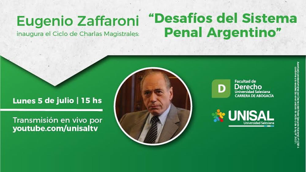 Será el próximo lunes 5 de julio a las 15.00 inaugurando el ciclo de charlas magistrales “Desafíos del Sistema Penal Argentino” con conferencia del Dr. Eugenio Raúl Zaffaroni.